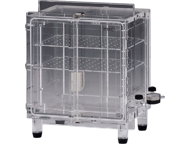 Acrylic Vacuum Desicator Outside dimensions (mm)600W x 453D x 600H Usable inside dimensions (mm)350W x 275D x 400H Vacuum gaugeOne piece; For 0 to -0.1 MPa Valves2 pieces; Nozzle diameter 9mm PackingMade of silicon Rack shelves2 racks as accessories; rack thickness: 5mm weightApprox. 38kg